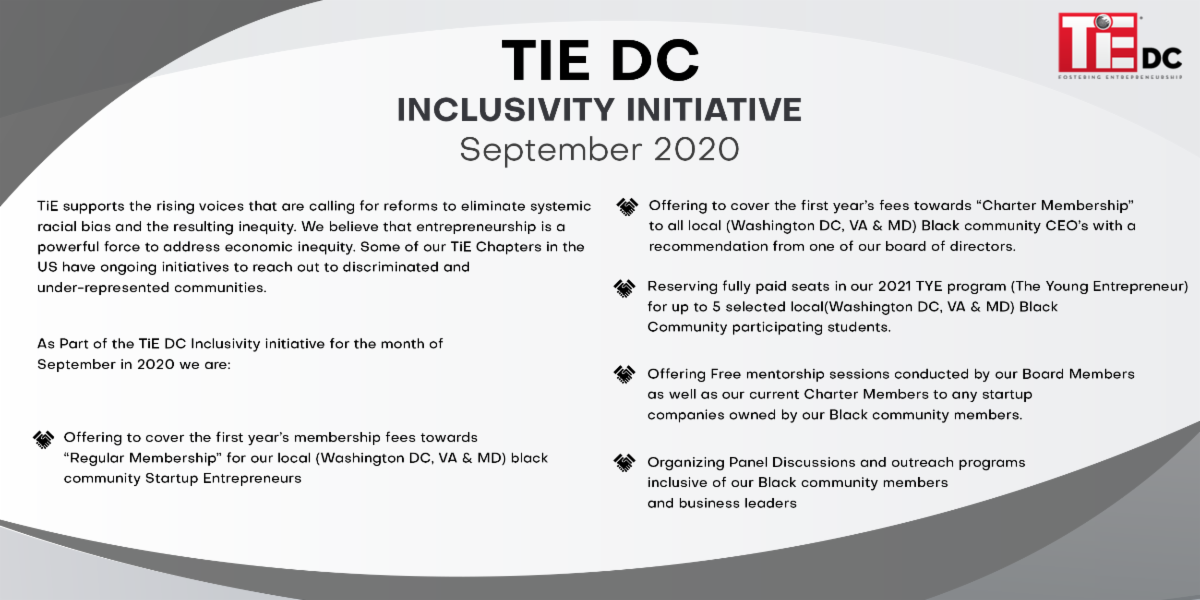 Dear TiE DC Friends: Thank you for tuning in to another edition of our quarterly newsletter! I hope you and your families are all doing well in these challenging times. Together the board has worked hard to serve our membership community through vibrant programming, facilitating connections and mentoring sessions, and providing leadership development.